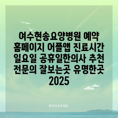여수현송요양병원 예약 홈페이지 어플앱 진료시간 일요일 공휴일한의사 추천 전연락 잘보는곳 유명한곳 2025 에 대해 자주 묻는 질문 TOP 5
