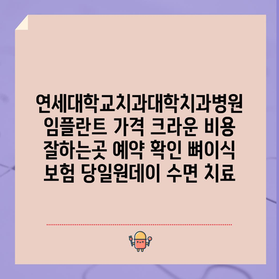 연세대학교치과대학치과병원 임플란트 가격 크라운 비용 잘하는곳 예약 확인 뼈이식 보험 당일원데이 수면 치료
