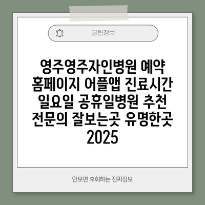 영주영주자인병원 예약 홈페이지 어플앱 진료시간 일요일 공휴일병원 추천 전연락 잘보는곳 유명한곳 2025 에 대해 자주 묻는 질문 TOP 5