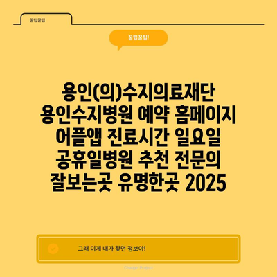 용인(의)수지의료재단 용인수지병원 예약 홈페이지 어플앱 진료시간 일요일 공휴일병원 추천 전연락 잘보는곳 유명한곳 2025 에 대해 자주 묻는 질문 TOP 5
