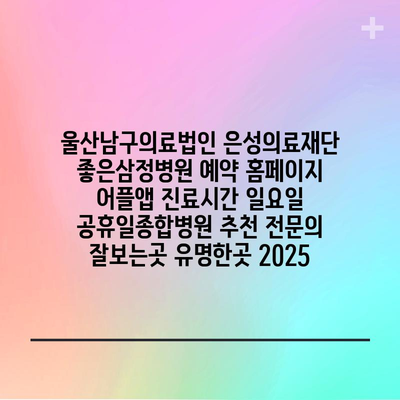 울산남구의료법인 은성의료재단 좋은삼정병원 예약 홈페이지 어플앱 진료시간 일요일 공휴일종합병원 추천 전연락 잘보는곳 유명한곳 2025 에 대해 자주 묻는 질문 TOP 5