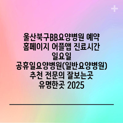 ✅ 울산북구BB요양병원의 진료시간과 예약방법을 지금 바로 알아보세요!