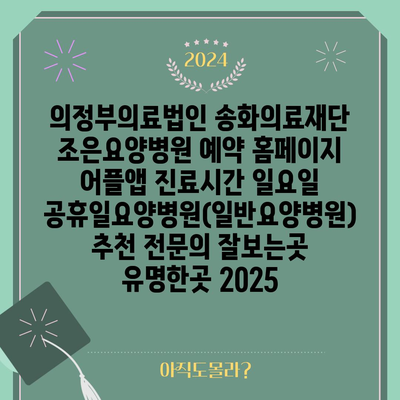 의정부의료법인 송화의료재단 조은요양병원 예약 홈페이지 어플앱 진료시간 일요일 공휴일요양병원(일반요양병원) 추천 전연락 잘보는곳 유명한곳 2025 에 대해 자주 묻는 질문 TOP 5