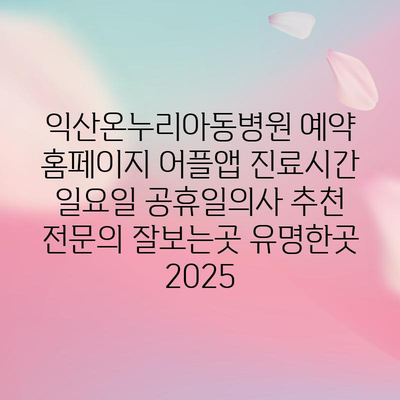 익산온누리아동병원 예약 홈페이지 어플앱 진료시간 일요일 공휴일의사 추천 전연락 잘보는곳 유명한곳 2025 에 대해 자주 묻는 질문 TOP 5