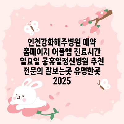 인천강화해주병원 예약 홈페이지 어플앱 진료시간 일요일 공휴일정신병원 추천 전연락 잘보는곳 유명한곳 2025 에 대해 자주 묻는 질문 TOP 5
