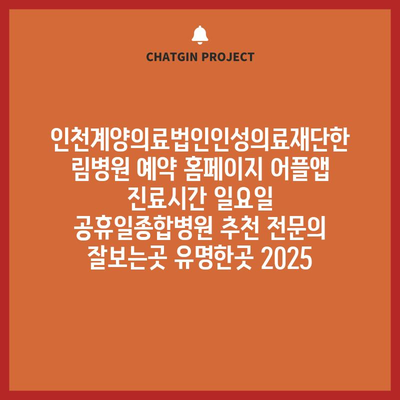 인천계양의료법인인성의료재단한림병원 예약 홈페이지 어플앱 진료시간 일요일 공휴일종합병원 추천 전연락 잘보는곳 유명한곳 2025 에 대해 자주 묻는 질문 TOP 5