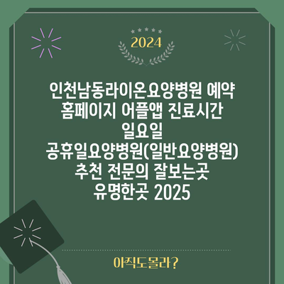 인천남동라이온요양병원 예약 홈페이지 어플앱 진료시간 일요일 공휴일요양병원(일반요양병원) 추천 전연락 잘보는곳 유명한곳 2025 에 대해 자주 묻는 질문 TOP 5