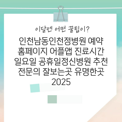 인천남동인천정병원 예약 홈페이지 어플앱 진료시간 일요일 공휴일정신병원 추천 전연락 잘보는곳 유명한곳 2025 에 대해 자주 묻는 질문 TOP 5