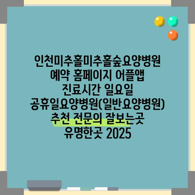 인천미추홀미추홀숲요양병원 예약 홈페이지 어플앱 진료시간 일요일 공휴일요양병원(일반요양병원) 추천 전연락 잘보는곳 유명한곳 2025 에 대해 자주 묻는 질문 TOP 5