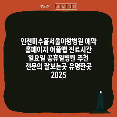 인천미추홀서울이왕병원 예약 홈페이지 어플앱 진료시간 일요일 공휴일병원 추천 전연락 잘보는곳 유명한곳 2025 에 대해 자주 묻는 질문 TOP 5