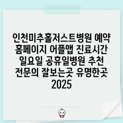 인천미추홀저스트병원 예약 홈페이지 어플앱 진료시간 일요일 공휴일병원 추천 전연락 잘보는곳 유명한곳 2025 에 대해 자주 묻는 질문 TOP 5