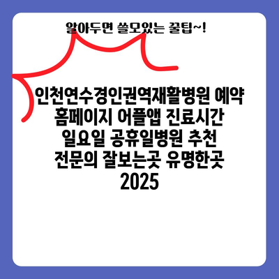 인천연수경인권역재활병원 예약 홈페이지 어플앱 진료시간 일요일 공휴일병원 추천 전연락 잘보는곳 유명한곳 2025 에 대해 자주 묻는 질문 TOP 5