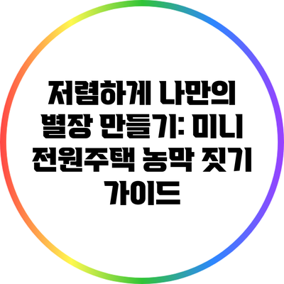여러분이 상상하는 그 공간을 저렴하게 실현할 수 있는 방법이 있습니다. 미니 전원주택 또는 농막을 짓는 것은 그 해결책이 될 수 있어요. 이 글에서는 저렴하게 나만의 별장을 만드는 방법과 농막 짓기 과정에 대해 알아볼게요.