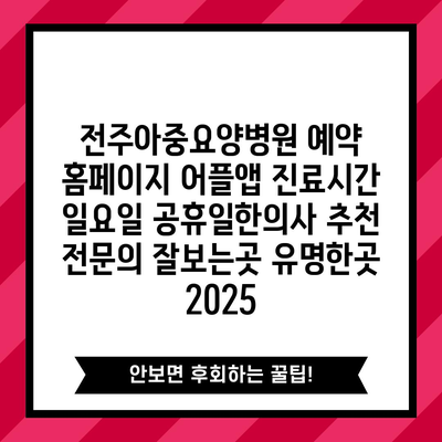 ✅ 전주아중요양병원 예약 방법과 치료 정보를 한눈에 확인하세요.