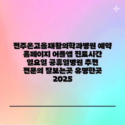 전주온고을재활의학과병원 예약 홈페이지 어플앱 진료시간 일요일 공휴일병원 추천 전연락 잘보는곳 유명한곳 2025 에 대해 자주 묻는 질문 TOP 5