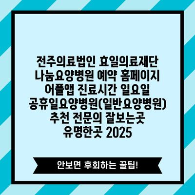 전주의료법인 효일의료재단 나눔요양병원 예약 홈페이지 어플앱 진료시간 일요일 공휴일요양병원(일반요양병원) 추천 전연락 잘보는곳 유명한곳 2025 에 대해 자주 묻는 질문 TOP 5