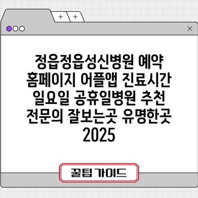 정읍정읍성신병원 예약 홈페이지 어플앱 진료시간 일요일 공휴일병원 추천 전연락 잘보는곳 유명한곳 2025 에 대해 자주 묻는 질문 TOP 5