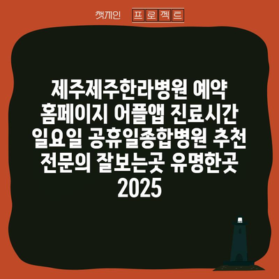 제주제주한라병원 예약 홈페이지 어플앱 진료시간 일요일 공휴일종합병원 추천 전문의 잘보는곳 유명한곳 2025