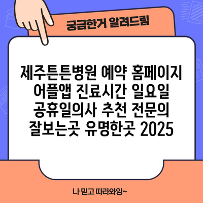 제주튼튼병원 예약 홈페이지 어플앱 진료시간 일요일 공휴일의사 추천 전연락 잘보는곳 유명한곳 2025 에 대해 자주 묻는 질문 TOP 5
