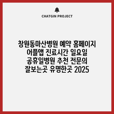 창원동마산병원 예약 홈페이지 어플앱 진료시간 일요일 공휴일병원 추천 전연락 잘보는곳 유명한곳 2025 에 대해 자주 묻는 질문 TOP 5