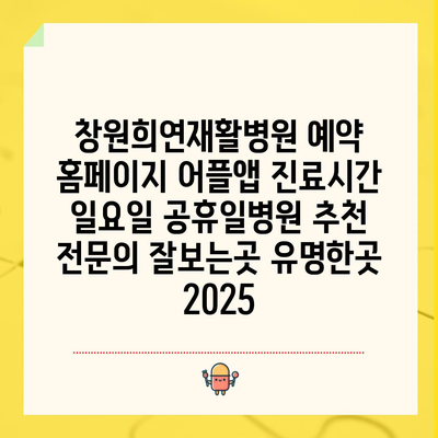 창원희연재활병원 예약 홈페이지 어플앱 진료시간 일요일 공휴일병원 추천 전연락 잘보는곳 유명한곳 2025 에 대해 자주 묻는 질문 TOP 5