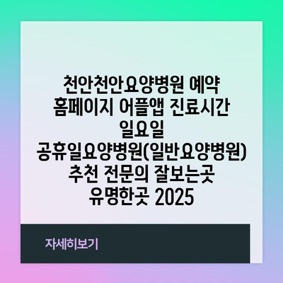 천안천안요양병원 예약 홈페이지 어플앱 진료시간 일요일 공휴일요양병원(일반요양병원) 추천 전연락 잘보는곳 유명한곳 2025 에 대해 자주 묻는 질문 TOP 5