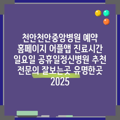 천안천안중앙병원 예약 홈페이지 어플앱 진료시간 일요일 공휴일정신병원 추천 전연락 잘보는곳 유명한곳 2025 에 대해 자주 묻는 질문 TOP 5