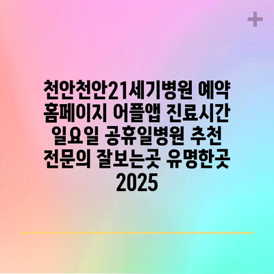 천안천안21세기병원 예약 홈페이지 어플앱 진료시간 일요일 공휴일병원 추천 전연락 잘보는곳 유명한곳 2025 에 대해 자주 묻는 질문 TOP 5