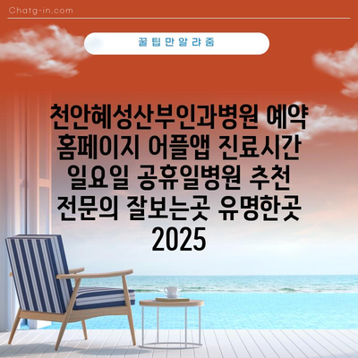 천안혜성산부인과병원 예약 홈페이지 어플앱 진료시간 일요일 공휴일병원 추천 전연락 잘보는곳 유명한곳 2025 에 대해 자주 묻는 질문 TOP 5