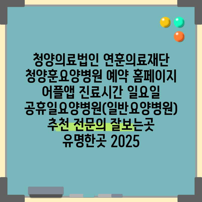 청양의료법인 연훈의료재단 청양훈요양병원 예약 홈페이지 어플앱 진료시간 일요일 공휴일요양병원(일반요양병원) 추천 전연락 잘보는곳 유명한곳 2025 에 대해 자주 묻는 질문 TOP 5