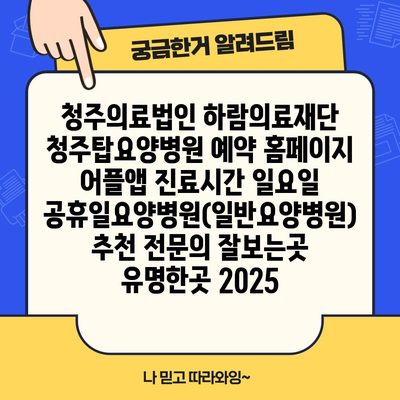 청주의료법인 하람의료재단 청주탑요양병원 예약 홈페이지 어플앱 진료시간 일요일 공휴일요양병원(일반요양병원) 추천 전연락 잘보는곳 유명한곳 2025 에 대해 자주 묻는 질문 TOP 5