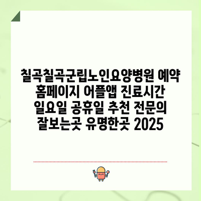 칠곡칠곡군립노인요양병원 예약 홈페이지 어플앱 진료시간 일요일 공휴일 추천 전연락 잘보는곳 유명한곳 2025 에 대해 자주 묻는 질문 TOP 5