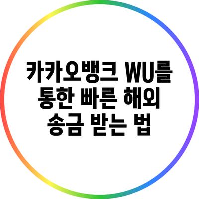 빠른 해외 송금은 오늘날의 글로벌 경제에서 필수적인 서비스로 자리잡고 있어요. 특히, 카카오뱅크에서 제공하는 WU 서비스를 이용하면 간편하고 신속하게 외화를 송금받을 수 있는데요, 이 글에서는 그 방법에 대해 자세히 알아보도록 하겠어요.
