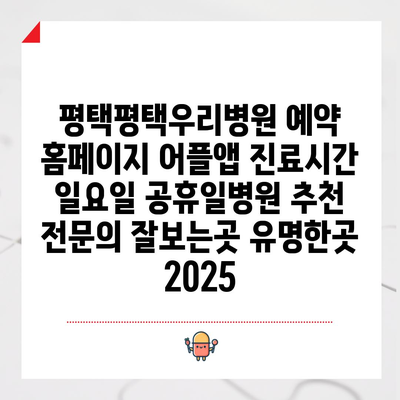 평택평택우리병원 예약 홈페이지 어플앱 진료시간 일요일 공휴일병원 추천 전연락 잘보는곳 유명한곳 2025 에 대해 자주 묻는 질문 TOP 5