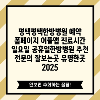 평택평택한방병원 예약 홈페이지 어플앱 진료시간 일요일 공휴일한방병원 추천 전연락 잘보는곳 유명한곳 2025 에 대해 자주 묻는 질문 TOP 5