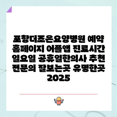 포항더조은요양병원 예약 홈페이지 어플앱 진료시간 일요일 공휴일한의사 추천 전연락 잘보는곳 유명한곳 2025 에 대해 자주 묻는 질문 TOP 5