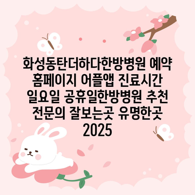 화성동탄더하다한방병원 예약 홈페이지 어플앱 진료시간 일요일 공휴일한방병원 추천 전연락 잘보는곳 유명한곳 2025 에 대해 자주 묻는 질문 TOP 5