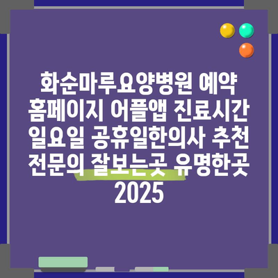 화순마루요양병원 예약 홈페이지 어플앱 진료시간 일요일 공휴일한의사 추천 전연락 잘보는곳 유명한곳 2025 에 대해 자주 묻는 질문 TOP 5