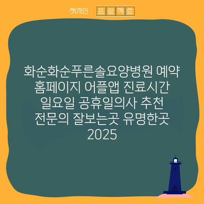 화순화순푸른솔요양병원 예약 홈페이지 어플앱 진료시간 일요일 공휴일의사 추천 전연락 잘보는곳 유명한곳 2025 에 대해 자주 묻는 질문 TOP 5