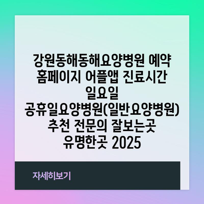 강원동해동해요양병원 예약 홈페이지 어플앱 진료시간 일요일 공휴일 추천 전문의 잘보는곳 유명한곳 2025