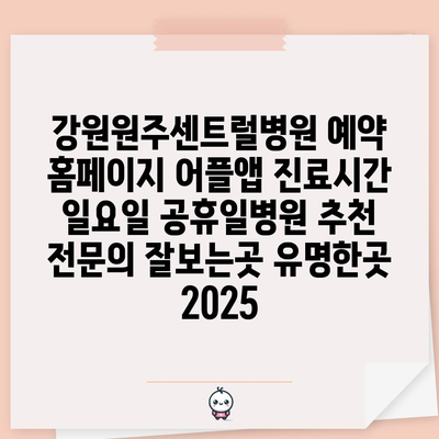강원원주센트럴병원 예약 홈페이지 어플앱 진료시간 일요일 공휴일병원 추천 전문의 잘보는곳 유명한곳 2025
