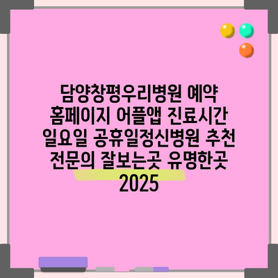담양창평우리병원 예약 홈페이지 어플앱 진료시간 일요일 공휴일정신병원 추천 전문의 잘보는곳 유명한곳 2025