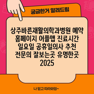 상주바른재활의학과병원 예약 홈페이지 어플앱 진료시간 일요일 공휴일병원 추천 전문의 잘보는곳 유명한곳 2025