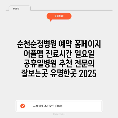 순천순정병원 예약 홈페이지 어플앱 진료시간 일요일 공휴일병원 추천 전문의 잘보는곳 유명한곳 2025